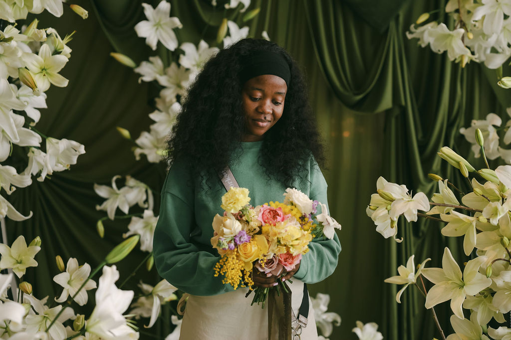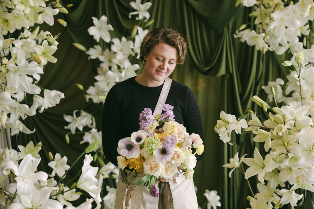 We love images of what our students have created, but we have to be honest, we love the look on their faces even more! That moment when their “bride” holds their bouquet and they can see it all come together. There is something magical that happens when a flower heart gets a platform to express themselves. Without fear or judgement. That is what we want to give each one of our students. A stage where they can admire their beautiful creations.