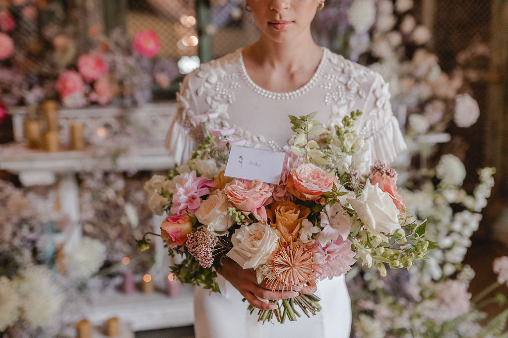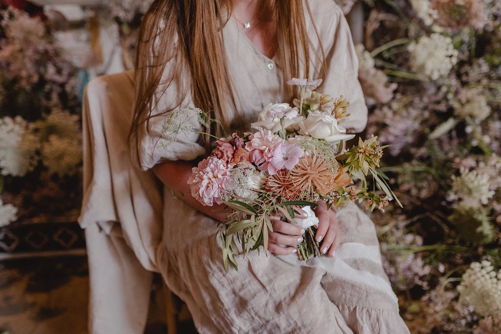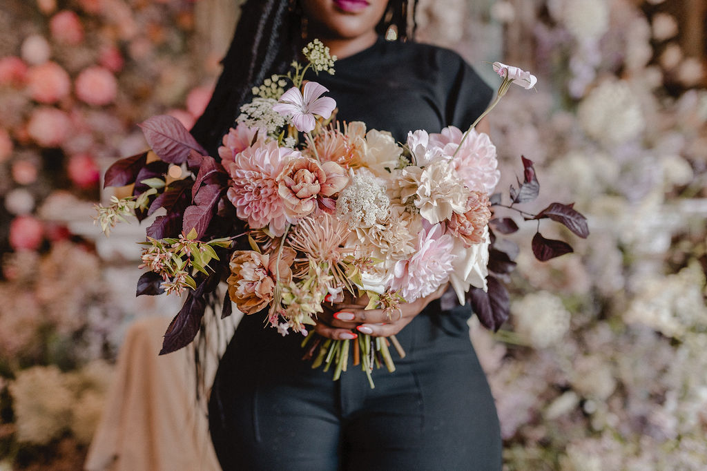 We LOVE seeing images of what our students have created, but we have to be honest, we love the look on their faces even more! That moment when their “bride” holds their bouquet and they can see it all come together. There is something magical that happens when a flower heart gets a platform to express themselves. Without fear or judgement. That is what we want to give each one of our students. A stage where they can admire their beautiful creations.