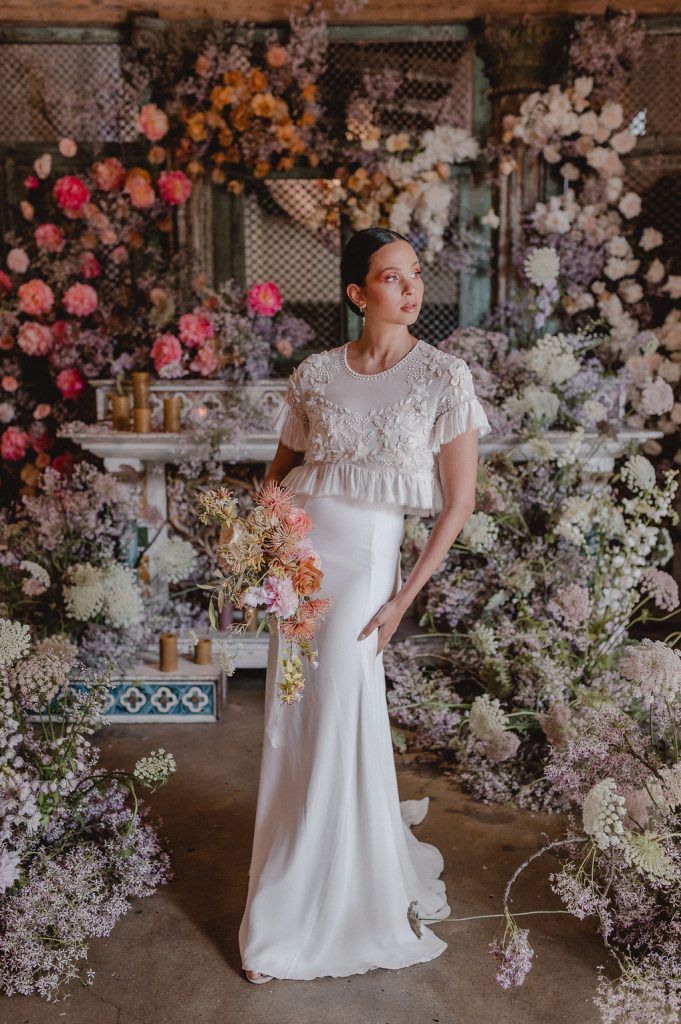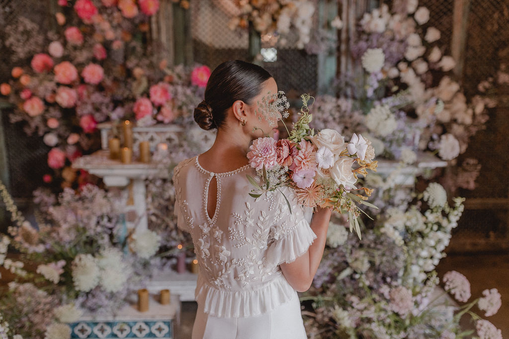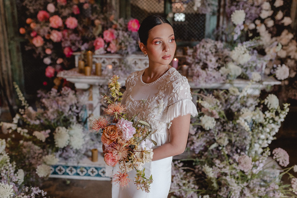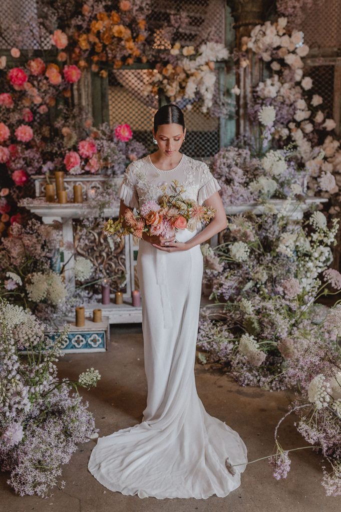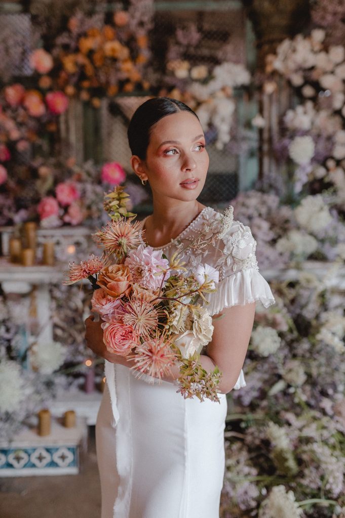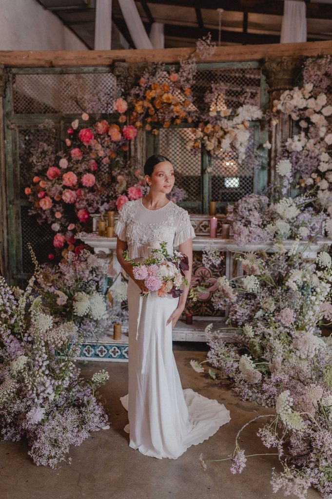Image credits | Florists: Anli Wahl Floral Design + KADOU Floral Artistry | Photographer: Chantall Marshall| Venue: Nooitgedacht | Dress: BO & Luca | Model: Kay Lamberts | Hair & makeup: Clarita Smit | Tabletop elements, chairs, lighting, furniture rigging, draping + serviettes: NConcepts & Design | Candles: Ohrr Candle Collective